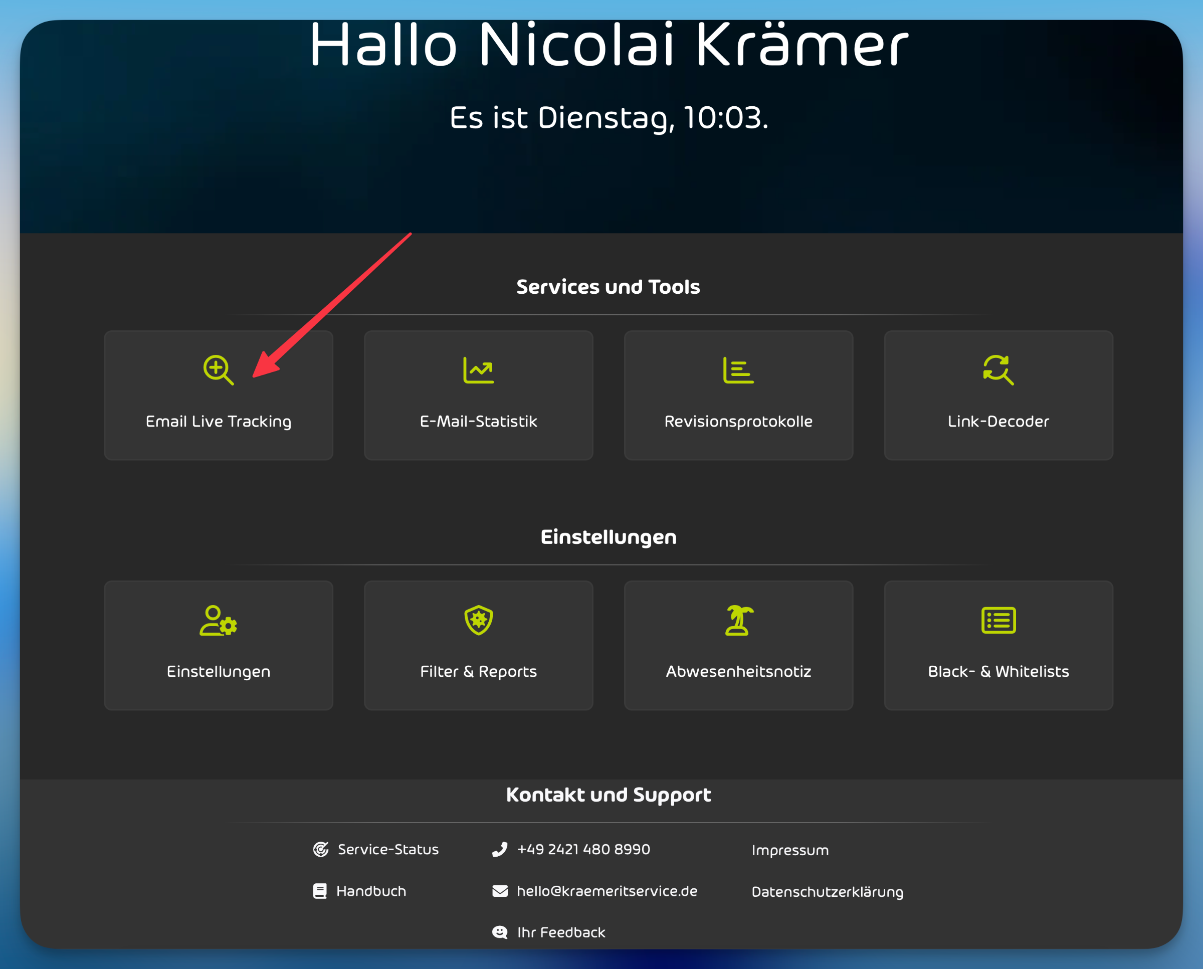 Gehe im Control Panel in den Bereich "E-Mail Live Tracking"